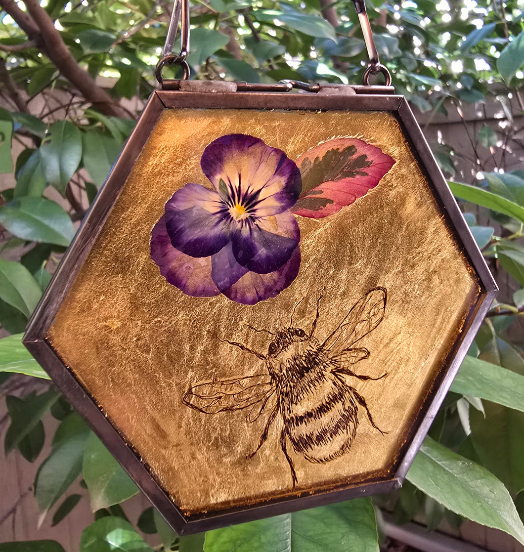 For most of my versions of this beautiful process, I have added pressed flowers from the garden before guilding.