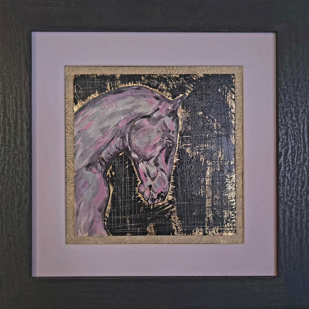 4"x4" oil and gold leaf on panel, mounted and framed in an 8"x8" hardwood frame.